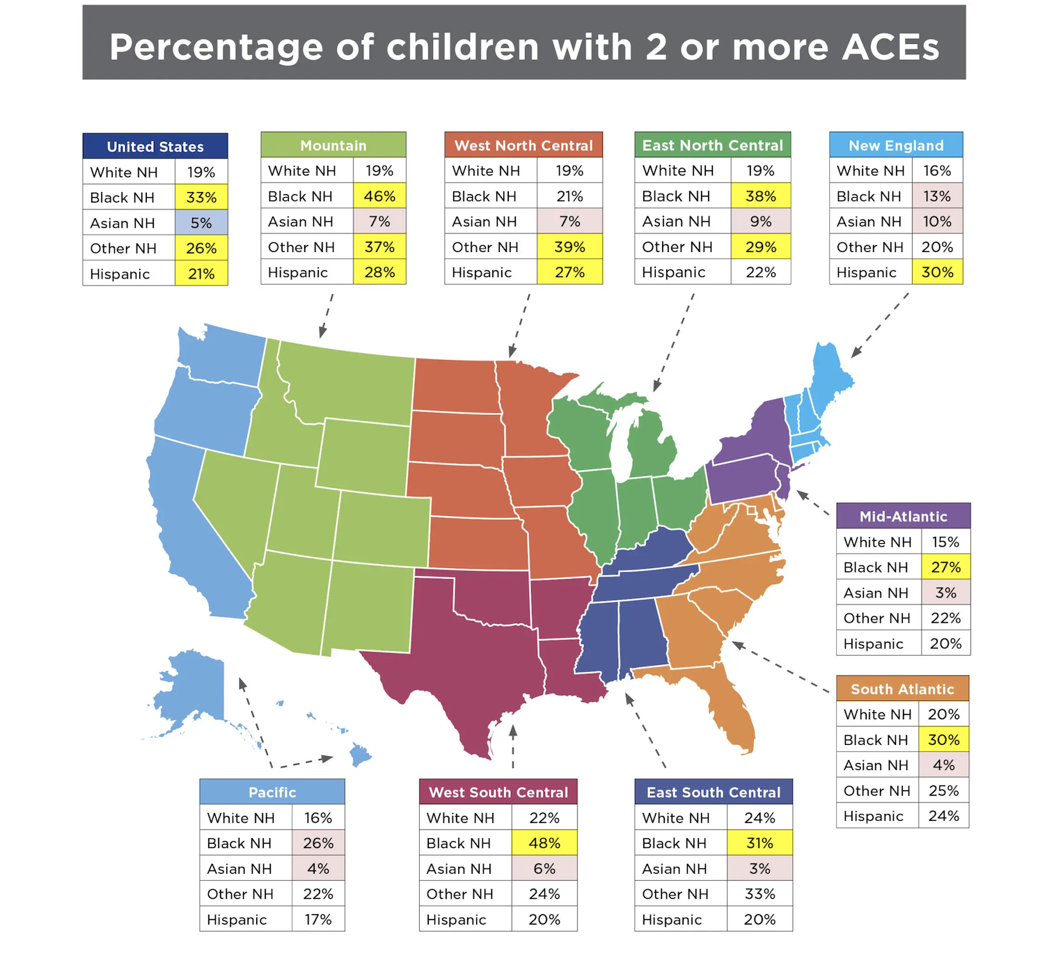 Nationally, more than 46 percent of U.S. youth—34 million children under age 18—have had at least one ACE, and more than 20 percent have had at least two. Strategies such as identification and assessments reduce risk and exposure. Programs and activities that nurture resilience and build skills are effective interventions.